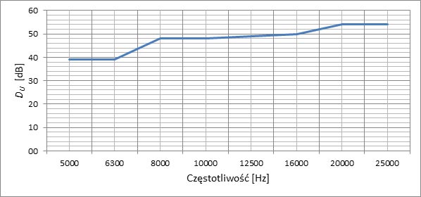 Natomiast w przypadku zbadanych przegród warstwowych wartości średnie izolacyjności akustycznej ciśnieniowej wahały się w granicach 44,1–60,1 dB. Ostatnia z tych wartości była wyznaczona dla przegrody o grubości 52 mm, składającej się z następujących warstw: blacha aluminiowa (1 mm), płyta polietylowa komorowa (50 mm) i blacha aluminiowa (1 mm).