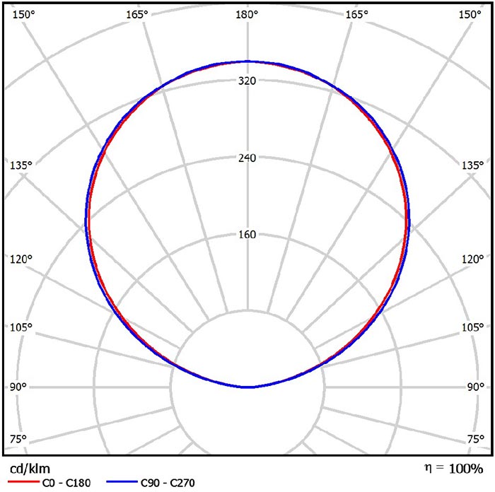 Projekt II.B.13. Zmierzony rozsył światłości oprawy z radiatorem przy pełnym wysterowaniu strumienia świetlnego diod LED o barwach 2 700 K i 5 000 K