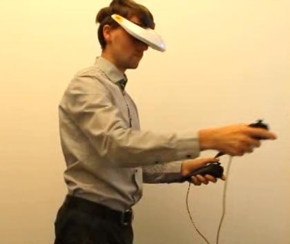 Projekt V.B.15. Stanowisko szkoleniowe wykorzystujące okulary rzeczywistości wirtualnej (HMD) oraz trzymany w dłoniach kontroler Razer Hydra umożliwiający interakcję z środowiskiem wirtualnym (np. przenoszenie wirtualnych przedmiotów)