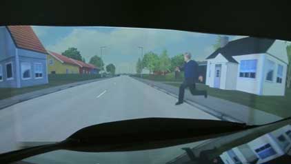 Zadanie badawcze III-45.Obraz wyświetlany przez symulator ilustrujący wtargnięcie pieszego na jezdnię