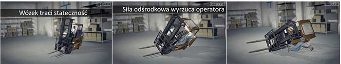 Zadanie 2.Z.19. Przykładowa sekwencja przedstawiająca przebieg przewrócenia się wózka jezdniowego z operatorem z jednego z opracowanych filmów