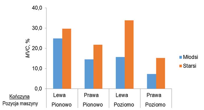 - Badanie zmian poziomu i sposobu aktywacji różnych grup mięśniowych w funkcji wieku pracownika