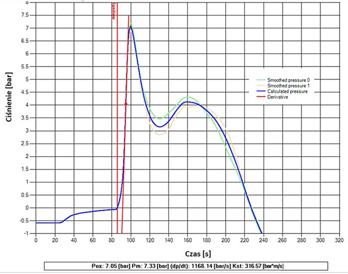 Projekt II.P.11. Wykres zmiany ciśnienia w czasie w trakcie wybuchu pyłu Bisfenolu A