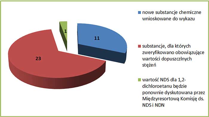 - zmiany wartości najwyższego dopuszczalnego stężenia (NDS) dla 114 substancji chemicznych i dla niektórych z nich najwyższego dopuszczalnego stężenia chwilowego (NDSCh)