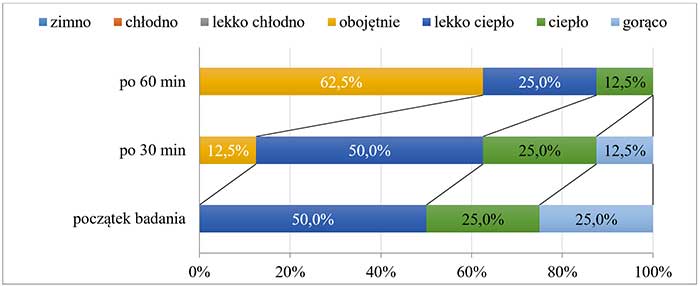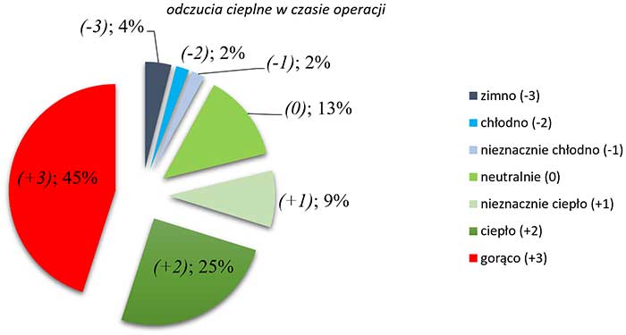 Projekt III.P.08. Odpowiedzi respondentów na pytanie o odczucia cieplne w czasie operacji