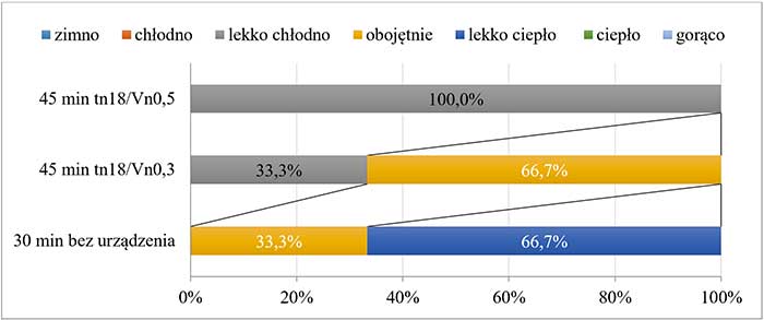 Po analizie uzyskanych wyników, przeprowadzono badania weryfikujące w warunkach rzeczywistych, w trzech salach operacyjnych z udziałem personelu medycznego, tzw. studium przypadku. Zarówno w badaniach laboratoryjnych, jak i w badaniach rzeczywistych uzyskano pozytywny wpływ działania urządzenia na poczucie komfortu cieplnego.