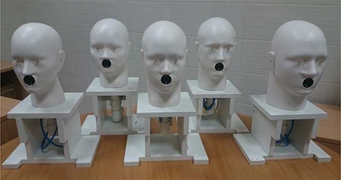 Następnie opracowano i zbudowano pięć modeli głów zgodnie z najnowszymi międzynarodowym dokumentami normatywnymi ISO 16900-5:2016 Respiratory protective devices – Methods of test and test equipment – Part 5: Breathing machine, metabolic simulator, RPD headforms and torso, tools and verification tools.