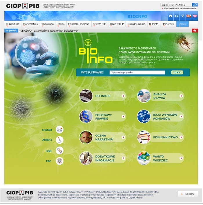 Opracowanie internetowej bazy wiedzy BioInfo wspomagającej prowadzenie oceny ryzyka zawodowego związanego z narażeniem na szkodliwe czynniki biologiczne