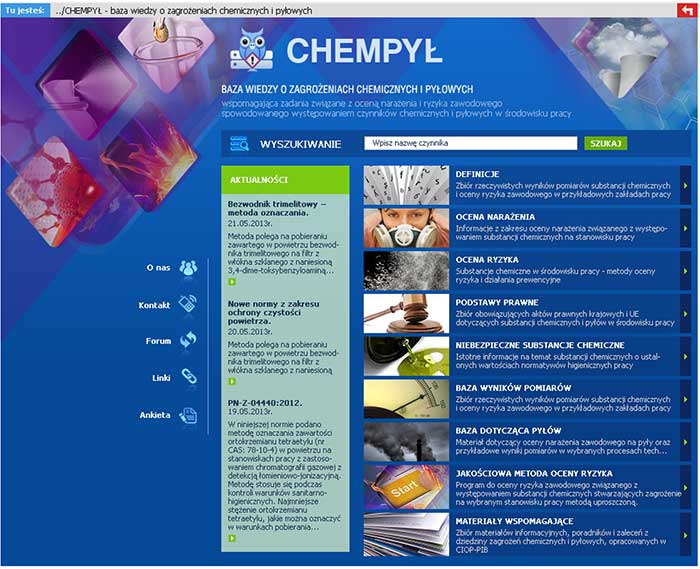 Weryfikacja i rozbudowa internetowej bazy ChemPył o nowe materiały i narzędzia wspomagające ocenę i profilaktykę narażenia na substancje chemiczne i pyły w środowisku pracy w mikro, małych i średnich przedsiębiorstwach