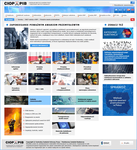 | Zadanie 4.G.11. Strona nawigacyjna serwisu pn. Przeciwdziałanie poważnym awariom przemysłowym udostępniona w portalu CIOP-PIB |