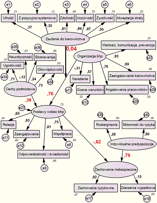 W ramach analizy wyników przeprowadzonego badania w 3. Etapie projektu opracowano 4 modele ścieżkowe SEM, które kompleksowo wyjaśniają wpływ zaufania w przedsiębiorstwie na bezpieczeństwo pracy. Przede wszystkim opracowano model, który potwierdza pozytywny wpływ zaufania w przedsiębiorstwie na przeciwdziałanie występowaniu niebezpiecznych zdarzeń, takich jak ryzykowne zachowania i zdarzenia wypadkowe. W wyniku innego modelu odkryto, że zaufanie przeciwdziała występowaniu tego typu zdarzeniom przez wywieranie pozytywnego wpływu na postawy pracowników wobec bezpieczeństwa i higieny pracy. W kolejnych modelach potwierdzono, że ocena efektów działań kierownictwa w organizowaniu BHP w przedsiębiorstwie jest silnie związana z poziomem zaufania oraz że zmienne te wywierają wspólny, interakcyjny wpływ na bezpieczeństwo w przedsiębiorstwie. Analiza efektu interakcji wykazała, że zaufanie wzmacnia pozytywne oddziaływanie na postawy pracowników organizowania BHP. Pracownicy ufający, skutecznemu w organizowaniu BHP, kierownictwu chętniej wykonują polecenia kierownictwa i chętniej współpracują w tym obszarze, wykazują większą inicjatywę i odpowiedzialność oraz rzadziej podejmują niebezpieczne zachowania.