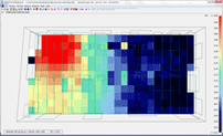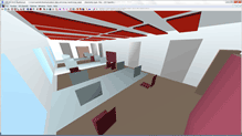 Projekt II.N.01. Widok pomieszczenia z uwzględnieniem adaptacji akustycznej | Projekt II.N.01. Rozkład wskaźnika transmisji mowy STI w pomieszczeniu |