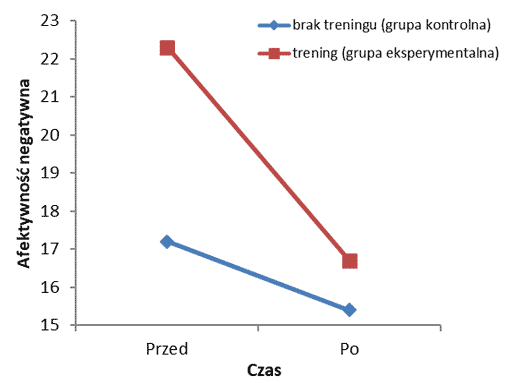Projekt IV.N.03.Efekt główny grupy (brak treningu vs. trening) na poziom afektywności negatywnej