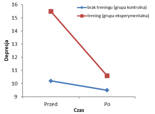 Projekt IV.N.03.Efekt główny grupy (brak treningu vs. trening) na poziom depresji