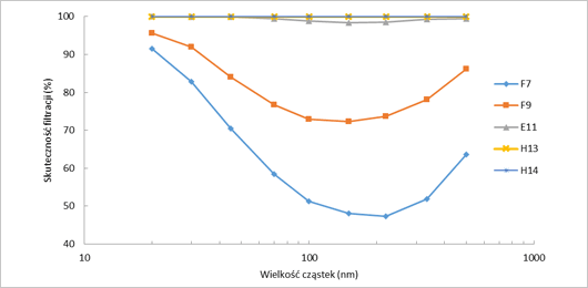 Zadanie 3.G.03. Wyniki badania skuteczności zatrzymywania nanocząstek na włókninach filtracyjnych różnych klas przeprowadzonego na zbudowanym stanowisku