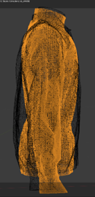 W ramach realizacji 3. etapu zadania wyznaczono objętość przestrzeni powietrznych oraz obliczono wielkości przestrzeni powietrznych w badanych zestawach odzieży. Opracowano siatki 3D badanych zestawów odzieży, wskazujące na sposób układania się górnej części odzieży na manekinie termicznym w zależności od rozmiaru bielizny oraz odzieży wierzchniej.