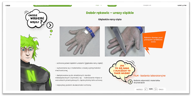 Zadanie 4.SP.03. Przykład widoku interfejsu z modułu tematycznego pt. Rękawice ochronne