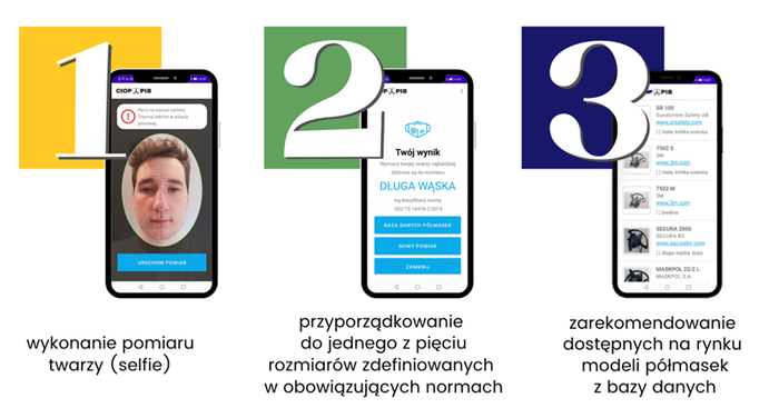 - Opracowanie aplikacji mobilnej wspomagającej prawidłowe dopasowanie półmasek do indywidualnych wymiarów twarzy użytkownika
