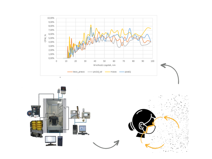 Badania środowiskowe polegały na pomiarze rozkładu wymiarowego i stężenia cząstek grafenu podczas produkcji grafenu płatkowego oraz jego form pochodnych. Na tej podstawie opracowano metodę generowania aerozolu powietrzno-grafenowego o charakterystyce zbliżonej do warunków rzeczywistych. W badaniach penetracji cząstek wobec grafenu płatkowego i jego form pochodnych wykorzystano między innymi liczniki i klasyfikatory nanocząstek o zakresie pomiarowym od 3 nm do 1000 nm, neutralizatory ładunku elektrostatycznego cząstek oraz osuszacz powietrza. Badania penetracji wobec cząstek grafenu płatkowego i jego form pochodnych przeprowadzono dla komercyjnie dostępnego, powszechnie stosowanego filtrującego, SOUO w postaci półmasek filtrujących klasy ochrony FFP2 i FFP3. Wykonano również ocenę szczelności przylegania sprzętu do twarzy użytkownika wykorzystując metodę całkowitego przecieku wewnętrznego. Wykorzystano do tego zrobotyzowany model głowy i tułowia, symulujący: poruszanie głową we wszystkich płaszczyznach, ruchy ramion, mowę oraz cykl oddechowy człowieka. Następnie, w odniesieniu do wybranych typów filtrującego SOUO przeprowadzono badania całkowitego przecieku wewnętrznego wobec aerozoli zawierających cząstki różnych form grafenu płatkowego w zależności od rodzaju symulowanej ciężkości pracy. Na podstawie przeprowadzonych badań, ustalono metodykę badań oraz wytypowano zredukowany tlenek grafenu (rGO) do dalszych badań. Opracowano także projekty dwóch procedur badawczych: penetracji cząstek i całkowitego przecieku wewnętrznego w stosunku do sprzętu przeznaczonego do ochrony układu oddechowego przed cząstkami grafenu płatkowego i jego formami pochodnymi. Potwierdzono możliwość prowadzenia badań dla filtrującego SOUO w zakresie cząstek od 7 nm do 270 nm z wykorzystaniem aerozolu zawierającego nanocząstki rGO.