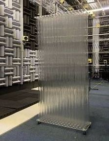 Założenia geometryczne prototypu bariery akustycznej w zakresie stosowanych materiałów oraz wymiarów elementów konstrukcyjnych przyjęto na podstawie opracowanych w 2. etapie modeli fizycznych. Sposób weryfikacji założeń projektowych polegał na pomiarach laboratoryjnych tłumienia przenoszenia (transmission loss – TL) i tłumienia wtrącenia (insertion loss – IL) struktury kryształów fononicznych oraz porównaniu wyników prototypu z modelami teoretycznymi i modelami fizycznymi uzyskanymi w 1. i 2. etapie projektu. Prototyp bariery akustycznej oraz jego demonstrację w warunkach operacyjnych przedstawiono na poniższych fotografiach.