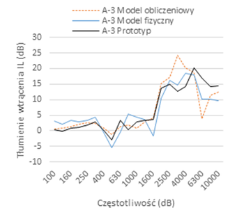 Wyniki pomiarów tłumienia hałasu w miejscu demonstracji prototypu bariery akustycznej potwierdziły zgodność z wynikami uzyskanymi w badaniach laboratoryjnych.