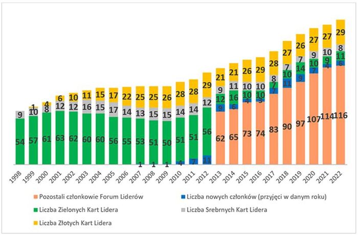W efekcie przeprowadzonych działań związanych z procesem rekrutacji kandydatów do Forum Liderów Bezpiecznej Pracy jego grono w latach realizacji zadania powiększyło sięo 9 nowych członków. Obecnie do Forum Liderów Bezpiecznej Pracy należy 170 firm i instytucji (zatrudniających łącznie ponad 281,9 tys. osób), z czego 48 posiada Karty Lidera Bezpiecznej Pracy: 29 Liderów posiada Karty Złote, 8 Liderów – Karty Srebrne, a 11 Liderów – Karty Zielone.