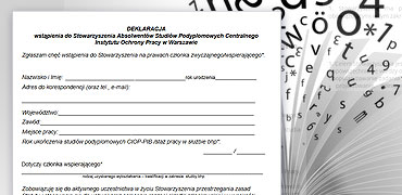 Stowarzyszenie zrzesza Absolwentów, którzy ukończyli Studia Podyplomowe w zakresie "Bezpieczeństwa i ochrony człowieka w środowisku pracy" prowadzone z udziałem CIOP-PIB.