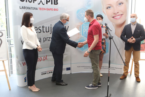The prize awards ceremony in the 30th edition of the OSH Poster Competition 2021 and the official opening of the post-competition exhibition took place on May 23, 2021 in the main hall of the Central Institute for Labour Protection - National Research Institute in Warsaw. Interested visitors can see the exhibition at the CIOP-PIB headquarters until the end of the year.