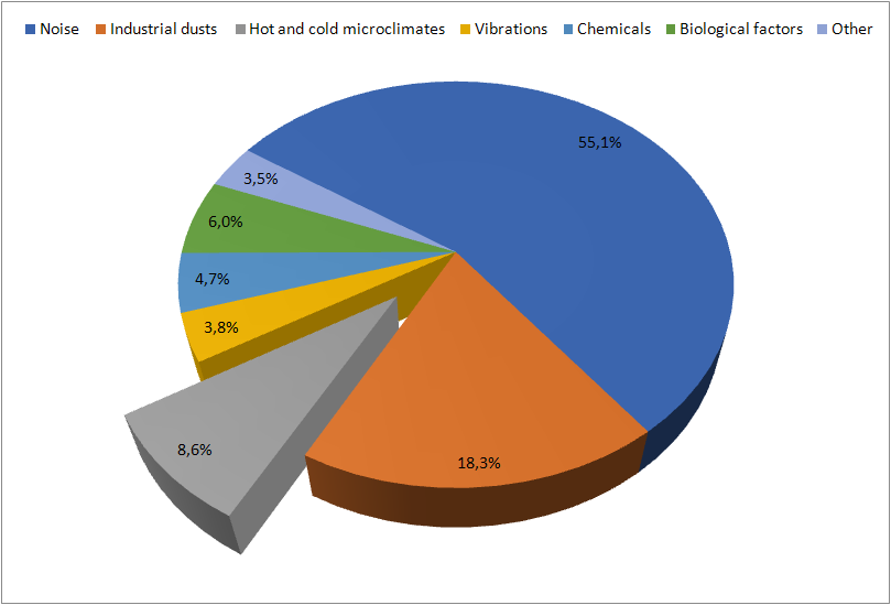 Fig. 1. Threats of the microclimate in the work environment against the background of other threats in 2020.