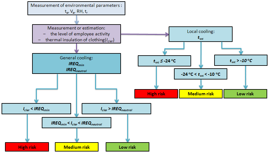 Occupational risk assessment in a cold environment can be defined using the IREQ and twc indexes (Figure 5).