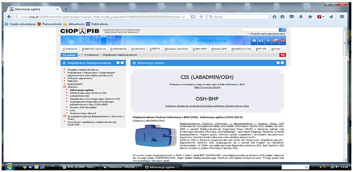 Wspieranie działań związanych z problematyką bezpieczeństwa i higieny pracy poprzez upowszechnianie informacji przez Polskie Krajowe Centrum Informacji o Bezpieczeństwie i Higienie Pracy (CIS)
