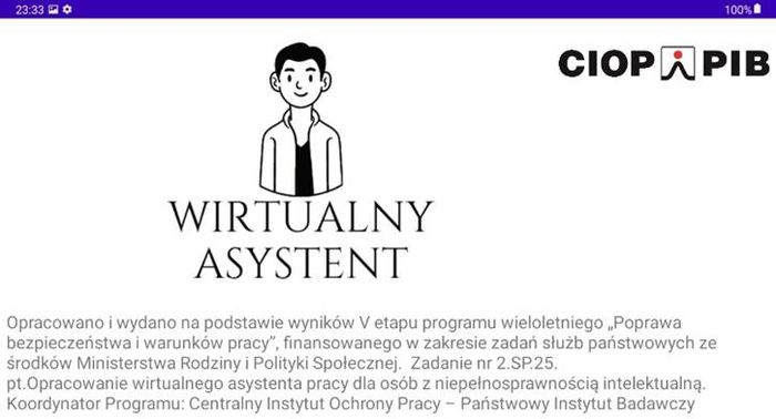 Celem głównym zadania było opracowanie aplikacji mobilnej pn. „Wirtualny asystent” dla osób z niepełnosprawnością intelektualną.
