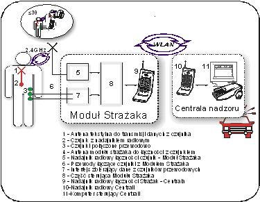 Rysunek 1 Schemat systemu komunikacji bezpośredniej pomiędzy odzieżą strażacką a centralą nadzoru na szczeblu interwencyjnym