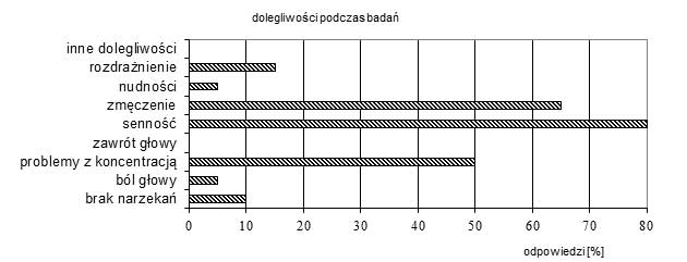 Zadanie badawcze II-27. Dolegliwości uczestników badań (w grupie 20 osób) podczas ekspozycji na hałas