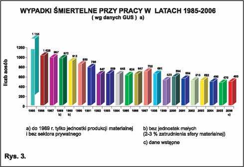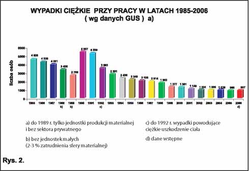 Źródło: Ocena stanu bezpieczeństwa i higieny pracy w 2006 roku. Ministerstwo Pracy i Polityki Społecznej, Warszawa, czerwiec 2007 r.