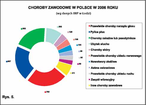 Według informacji ZUS, w 2006 r. przyznano 1 176 rent z tytułu niezdolności do pracy spowodowanej skutkami chorób zawodowych (o 7,8% mniej niż w 2005 r.), w tym w 29 przypadkach przyznano renty z tytułu całkowitej niezdolności do pracy i samodzielnej egzystencji, a w 59 przypadkach – renty z tytułu całkowitej niezdolności do pracy
