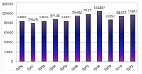 Rys. 1. Liczba wypadków przy pracy w Polsce w latach 2001-2011