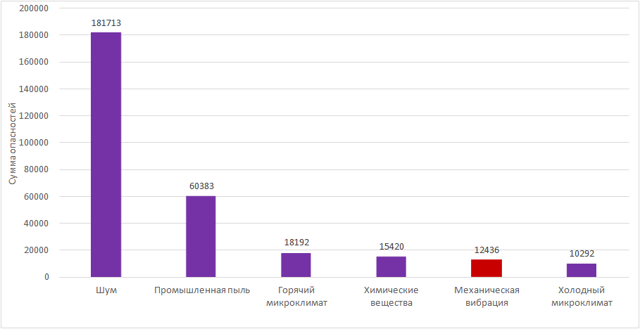 Механическая вибрация (вибрации) является четвертым по числу подверженных риску работников фактором, наносящим вред в рабочей среде (диаграммы на рис. 1). В 2020 году механическим вибрациям подвергся 12436 рабочий.