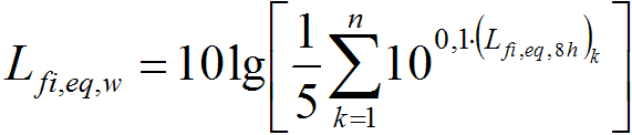 W przypadku gdy narażenie na hałas pracownika w poszczególnych dniach tygodnia pracy jest nierównomierne, do oceny narażenia na hałas stosuje się określone w pasmach częstotliwości równoważne poziomy ciśnienia akustycznego odniesione do przeciętnego tygodniowego (określonego w Kodeksie pracy) wymiaru czasu pracy. Wielkość ta określona jest zależnością: