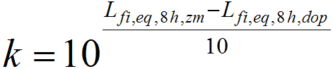 Krotność wartości dopuszczalnej w przypadku równoważnych poziomów ciśnienia akustycznego odniesionego do 8-godzinnego dnia pracy lub tygodnia pracy w pasmach częstotliwości z zakresu od 10 do 40 kHz wyznacza się korzystając z zależności: