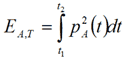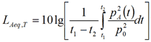 w którym pA(t) jest chwilowa wartością ciśnienia akustycznego skorygowanego charakterystyka częstotliwościową A sygnału akustycznego scałkowanego w przedziale czasu T, zaczynającym się w chwili t1 i kończącym się w chwili t2. Czas, T, mierzony w sekundach, jest zwykle wybierany tak, aby odpowiadał całkowitej dziennej ekspozycji na hałas (zwykle 8h, 28 800 s) lub dłuższemu okresowi, który ma być określony, np. tygodniowi pracy. Źródło: PN-ISO 1999:2000