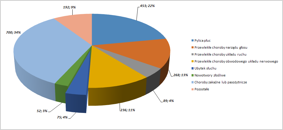 Rys. 9. Dominujące choroby zawodowe w Polsce w 2019 r. - liczba stwierdzonych przypadków.