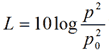 Ciśnienia akustyczne najcichszych i najgłośniejszych dźwięków odbieranych przez człowieka różnią się ponad milion razy. Z tego powodu w praktyce stosuje się skalę logarytmiczną i operuje się pojęciem poziomu ciśnienia akustycznego, wyrażonego w decybelach [dB], jako wartości względnej odniesionej do 20 μPa. Poziom ciśnienia akustycznego dźwięku L o ciśnieniu p wyznacza się na podstawie zależności: