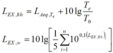 gdzie: LAeq,Ti - równoważny poziom dźwięku A uśredniony w przedziale czasu Ti,