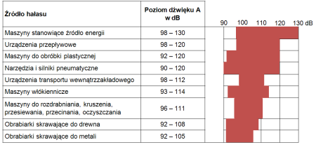 Tabela. 1. Zakresy typowych wartości poziomów dźwięku A hałasu generowanego przez źródła hałasu użytkowane w przemyśle.