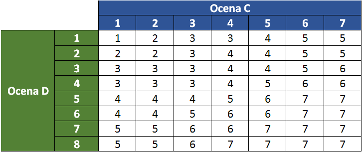Ocena grupy A i ocena grupy B umożliwia, z zastosowaniem odpowiedniej tabeli, ocenę C (Tabela 8).