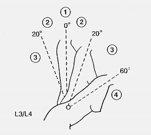 1 – dla zgięcia w zakresie 0°-10°