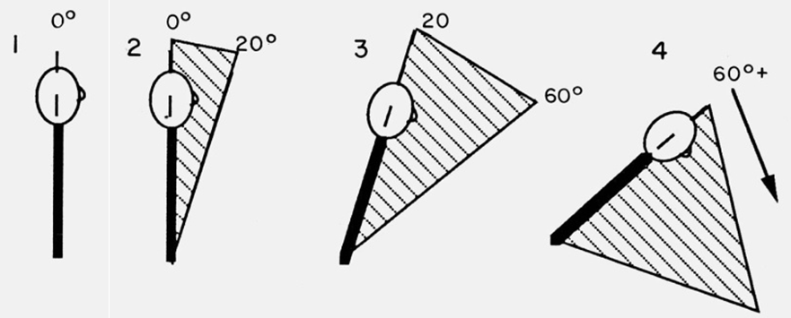 3 – wówczas, gdy występuje pochylenie lub odchylenie do tyłu w zakresie 20°-60°