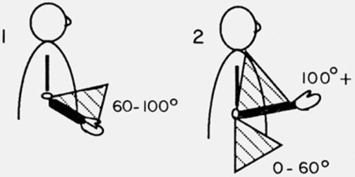 2 – wówczas, gdy kąt zgięcia w łokciu jest poniżej 60° lub powyżej 100°