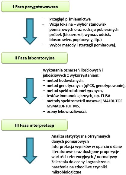 Ryc.3. Fazy badań mikrobiologicznych na stanowiskach pracy.